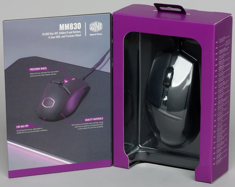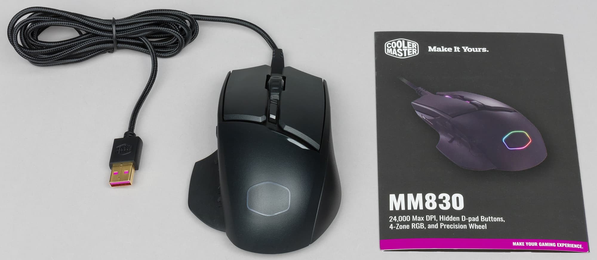 Комплектность набора более чем скромная: мышь Cooler Master MM830 и рекламно-информационный буклет.