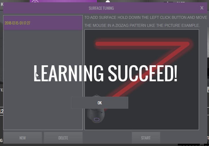 Тонкая подстройка поведения мыши производится в модуле Surface Tuning, где предлагается нарисовать букву Z. Программа во время такого рисования запоминает характер поверхности и используемую площадь.