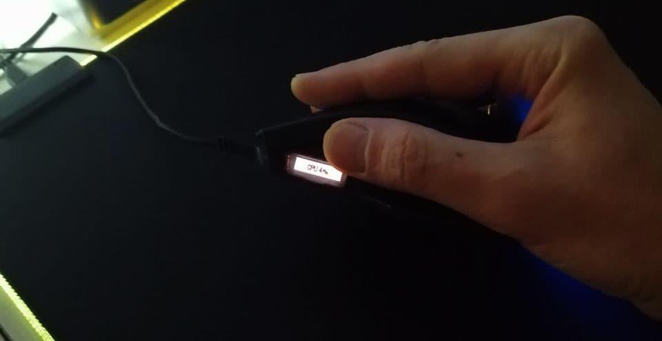 Но только это вовсе не логотип. Это монохромный OLED-дисплей. Миниатюрный, размером примерно 19×7 мм (точнее измерить не удается). На дисплей может выводиться самая разная информация, в том числе некоторые системные параметры.