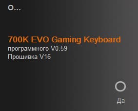 Фирменное ПО довольно аккуратно локализовано. Иногда с юморком. Например, окошко со сведениями о подключенной клавиатуре и программном обеспечении вызывается командой, которая называется О... Просто О...