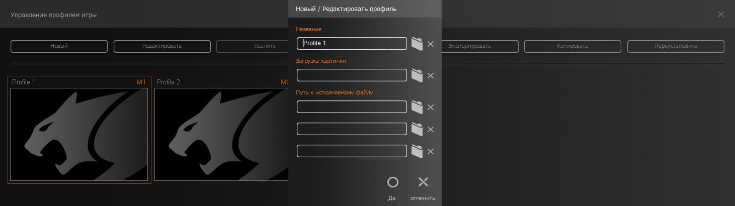 - добавление пользовательских профилей, переназначение клавиш