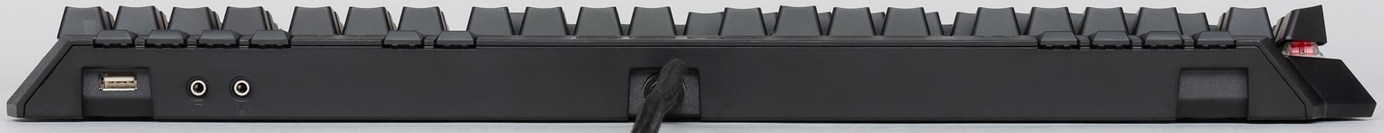 Для срабатывания контактов клавиш достаточно усилия в 45 граммов. Используемые в клавиатуре переключатели не издают щелчков. При нажатии слышно лишь негромкое бархатное соприкосновение клавиш с панелью, а при отпускании клавиши возникает такой же спокойный звук возврата кнопки.