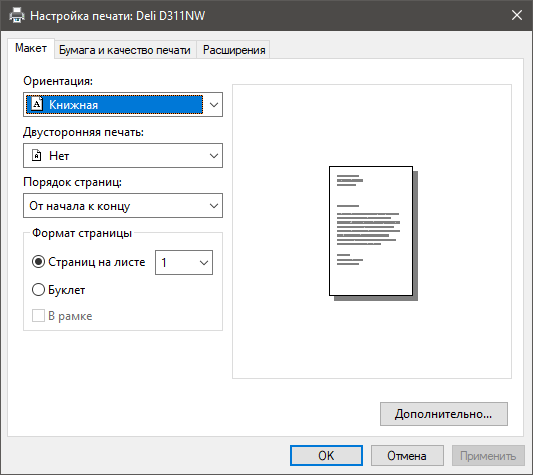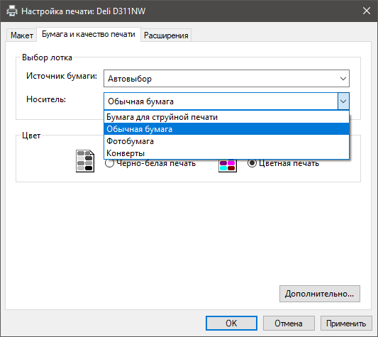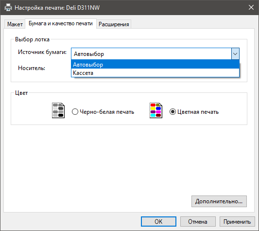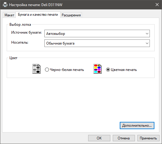 Наличие трех интерфейсов для подключения хвалить не будем: сегодня это норма даже в сегменте недорогих печатающих устройств. При обсуждении лазерного МФУ Deli M2500ADNW читатели высказывали неудовольствие из-за отсутствия возможности автономной печати с USB-носителя и сканирования с сохранением на него, нет таких функций и у Deli D311NW, но отметим: для реализации подобного потребуется существенное усложнение «мозгов» аппарата, что неизбежно приведет к заметному удорожанию, и если вы готовы доплатить за работу с флешками, то просто присматривайтесь к технике из более высокого ценового сегмента.