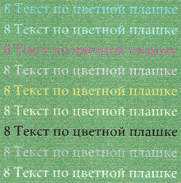 Текст по цветной плашке передается еще более посредственно, растр заметен при небольшом увеличении.