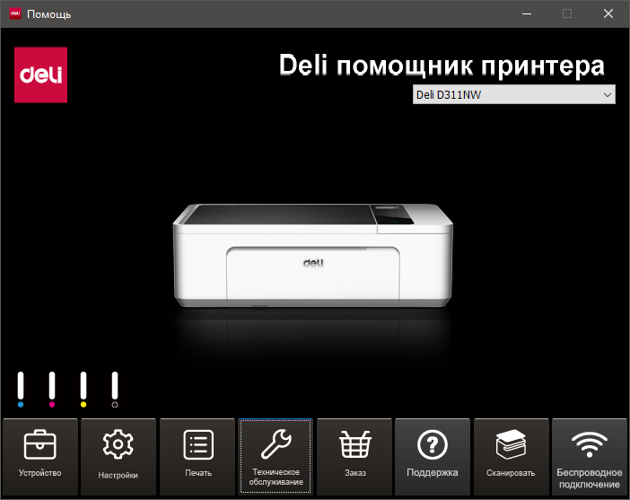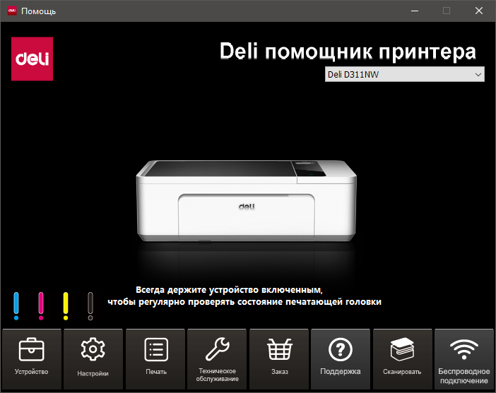 - Прошивка с русифицированным меню МФУ (пользовательским интерфейсом) уже стала доступна, достаточно обновиться с помощью утилиты Deli Printer Assistant