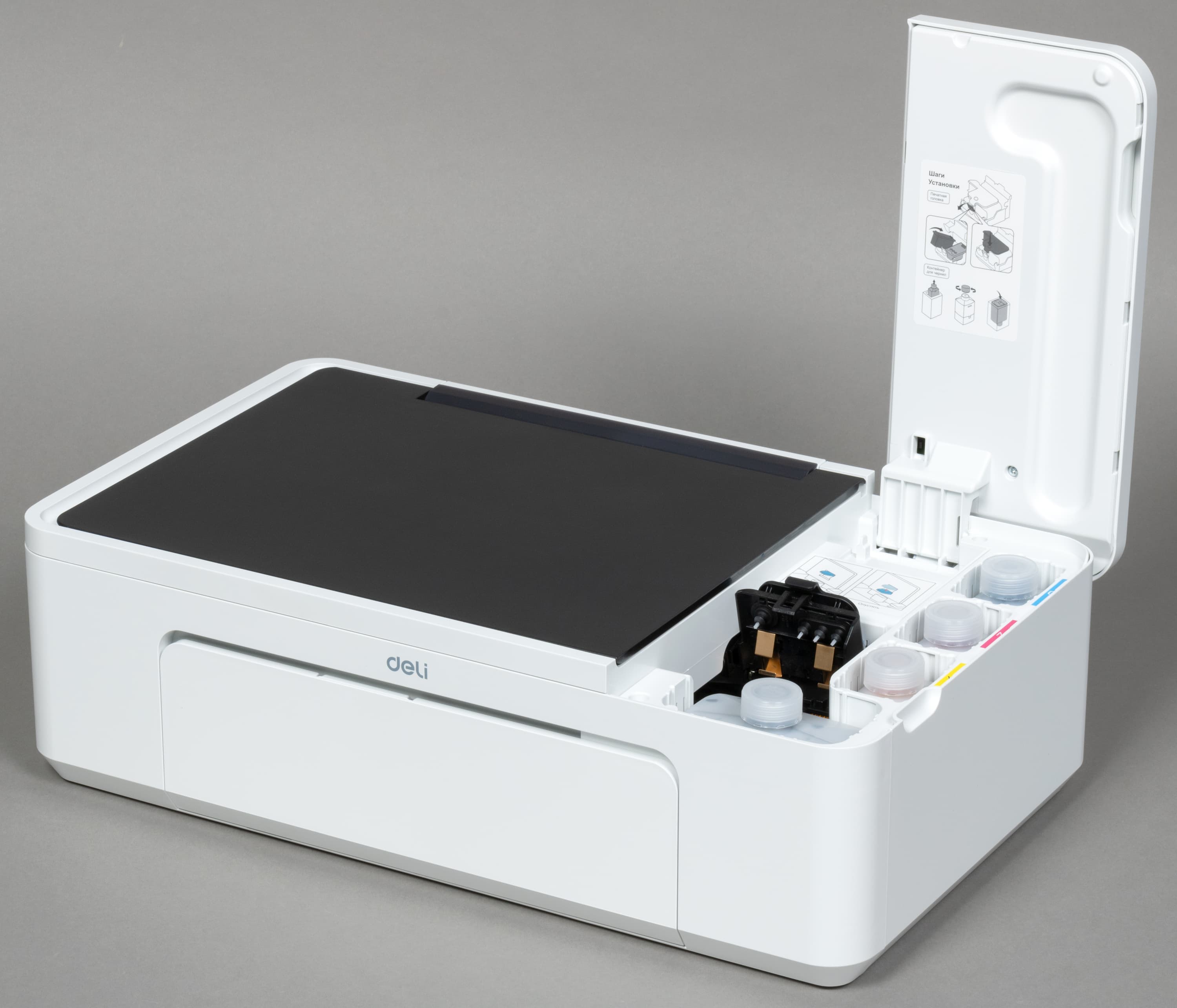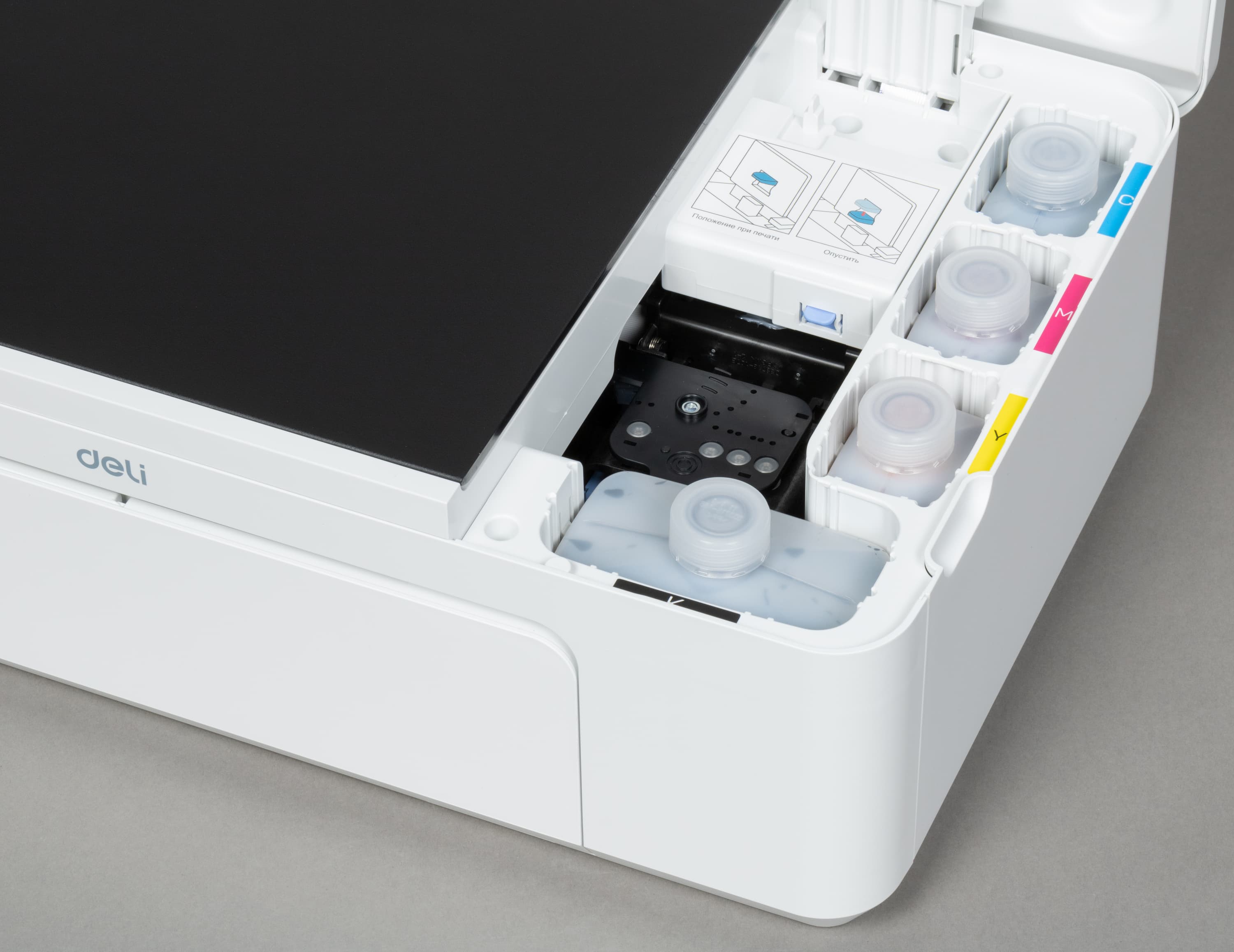 Мы уже знакомились с печатающей продукцией китайской компании Deli Group — лазерным МФУ Deli M2500ADNW, — поэтому лишь кратко напомним историю: фирма более 40 лет выпускает канцтовары, офисное оборудование и мебель, спортивные принадлежности и инструменты, в 2015 году была выпущена первая линейка лазерных принтеров, а к 2017 году появилось и первое поколение струйных аппаратов этого производителя.