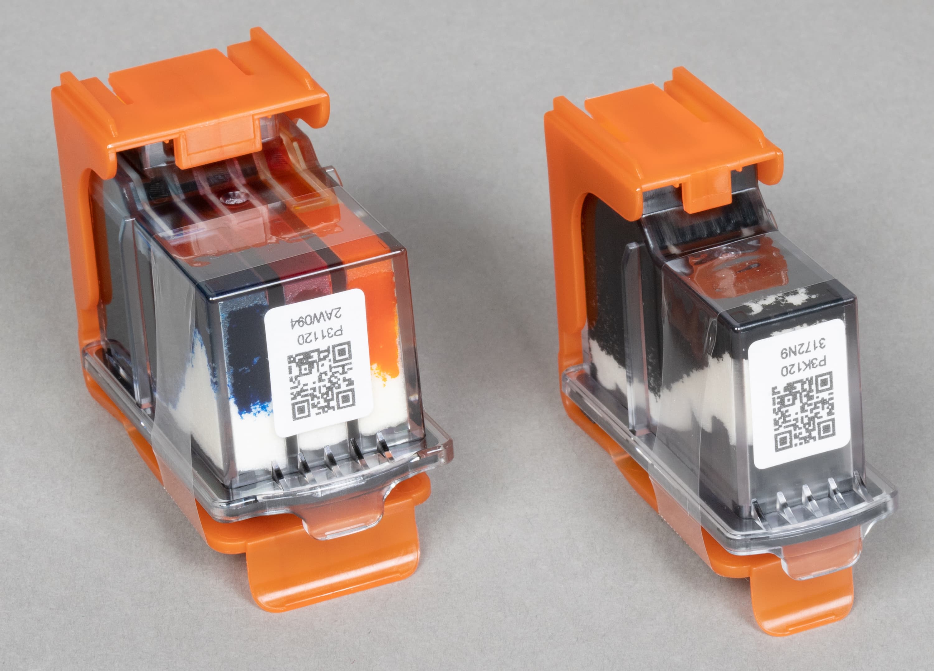 Замену печатающих головок инструкция относит к операциям, выполняемым владельцем. Причем цветную головку заменять придется вскоре после исчерпания запаса чернил из комплекта, напомним: ее наработку производитель оценивает в 10 тысяч отпечатков, а контейнеры CMY рассчитаны на 8 тысяч, и это может стать проблемой: предложений печатающих головок в российской рознице на время написания обзора не обнаружено. Хорошо еще, что «жесткого останова» после исчерпания срока службы головки не будет: если судить по списку сообщений об ошибках, продолжение печати возможно, однако качество может ухудшиться (а может и остаться прежним — очевидно, производитель после окончания ресурса головки просто ничего не гарантирует).