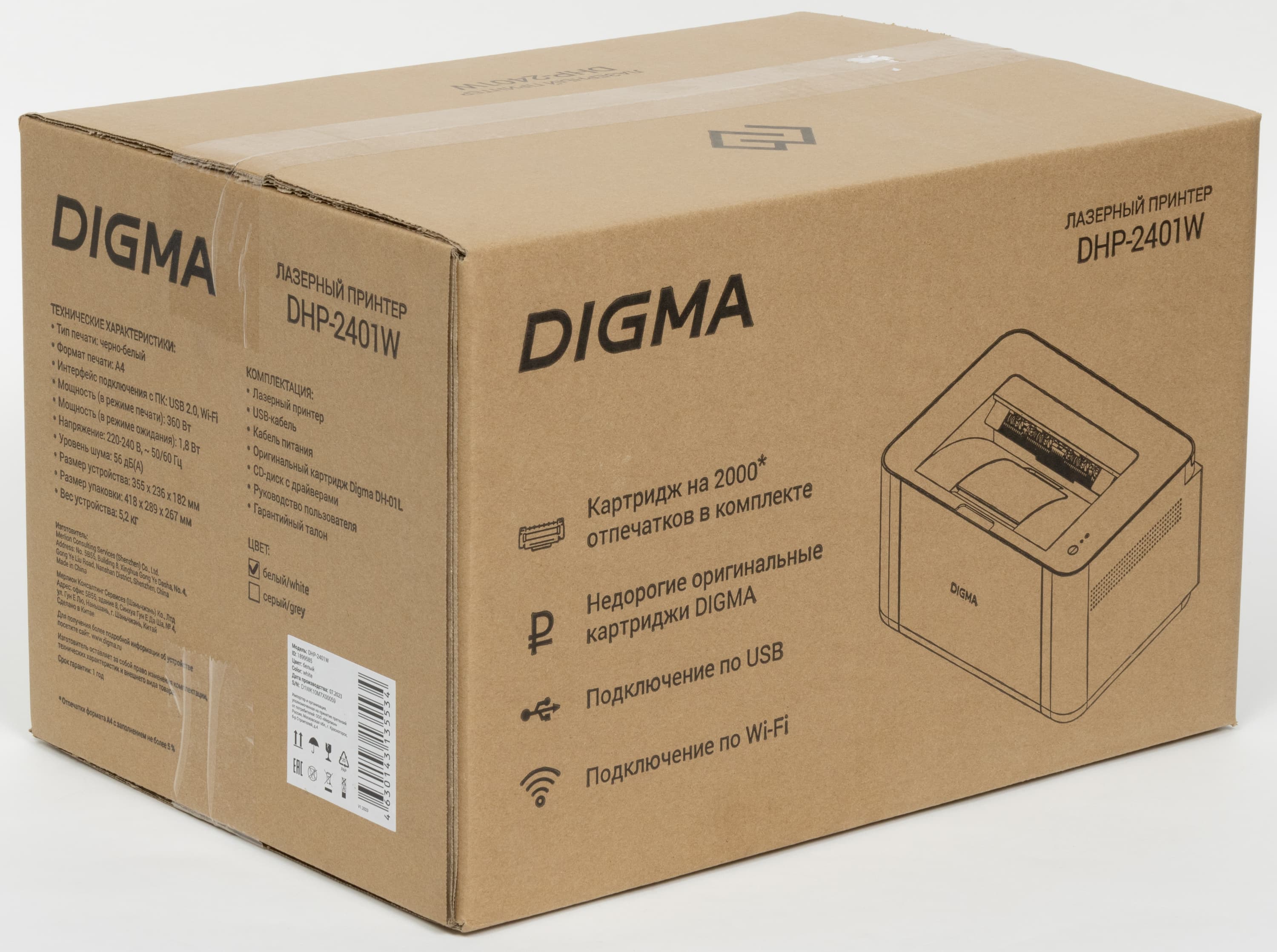 Мы рассмотрим старшую модель — принтер Digma DHP-2401W.