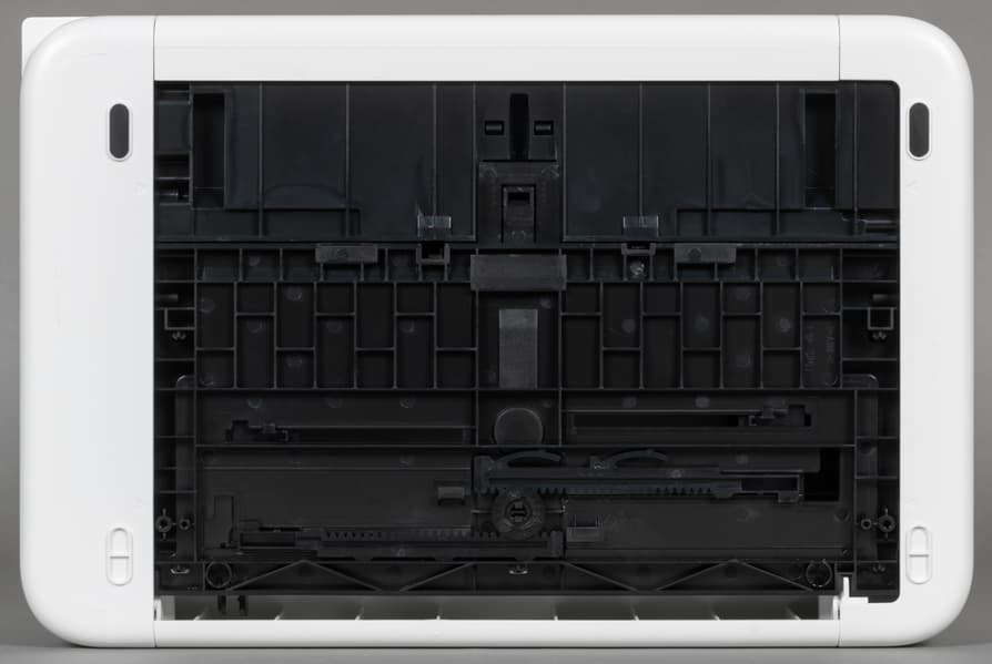 Таким образом, подразумевается изгиб листа в тракте практически на 180 градусов, что поневоле ограничивает диапазон плотностей носителей. А откидной крышки на задней стенке нет, то есть «спрямить» при необходимости путь прохождения, как это бывает в некоторых моделях, не получится.