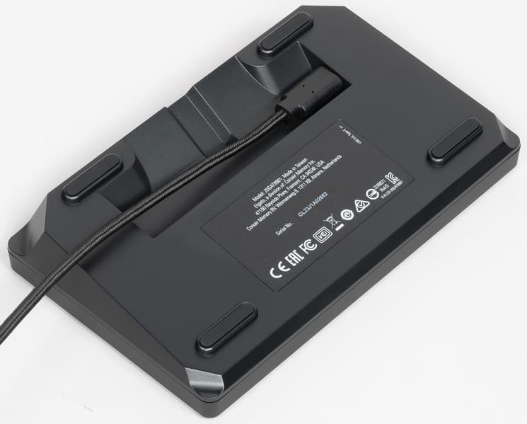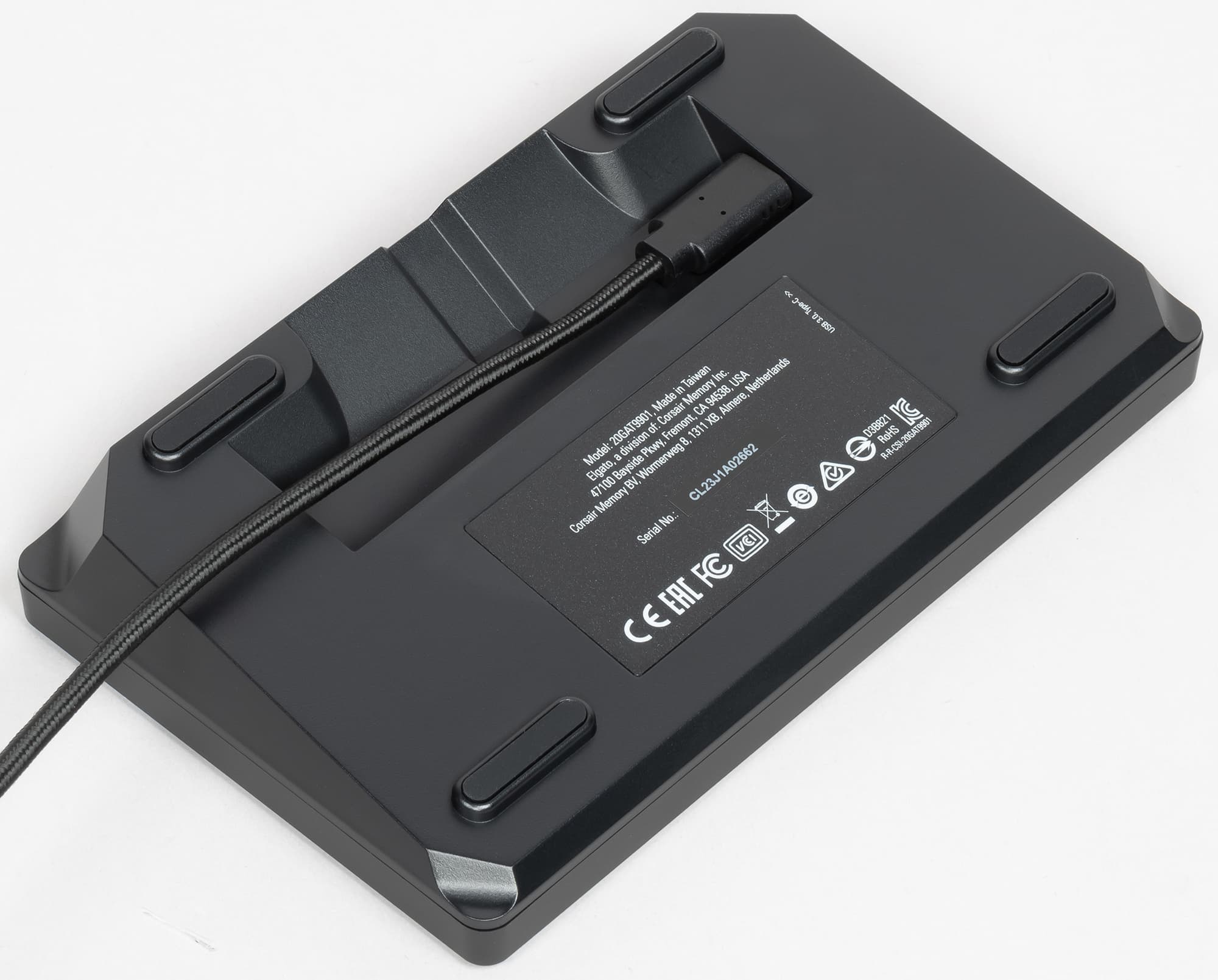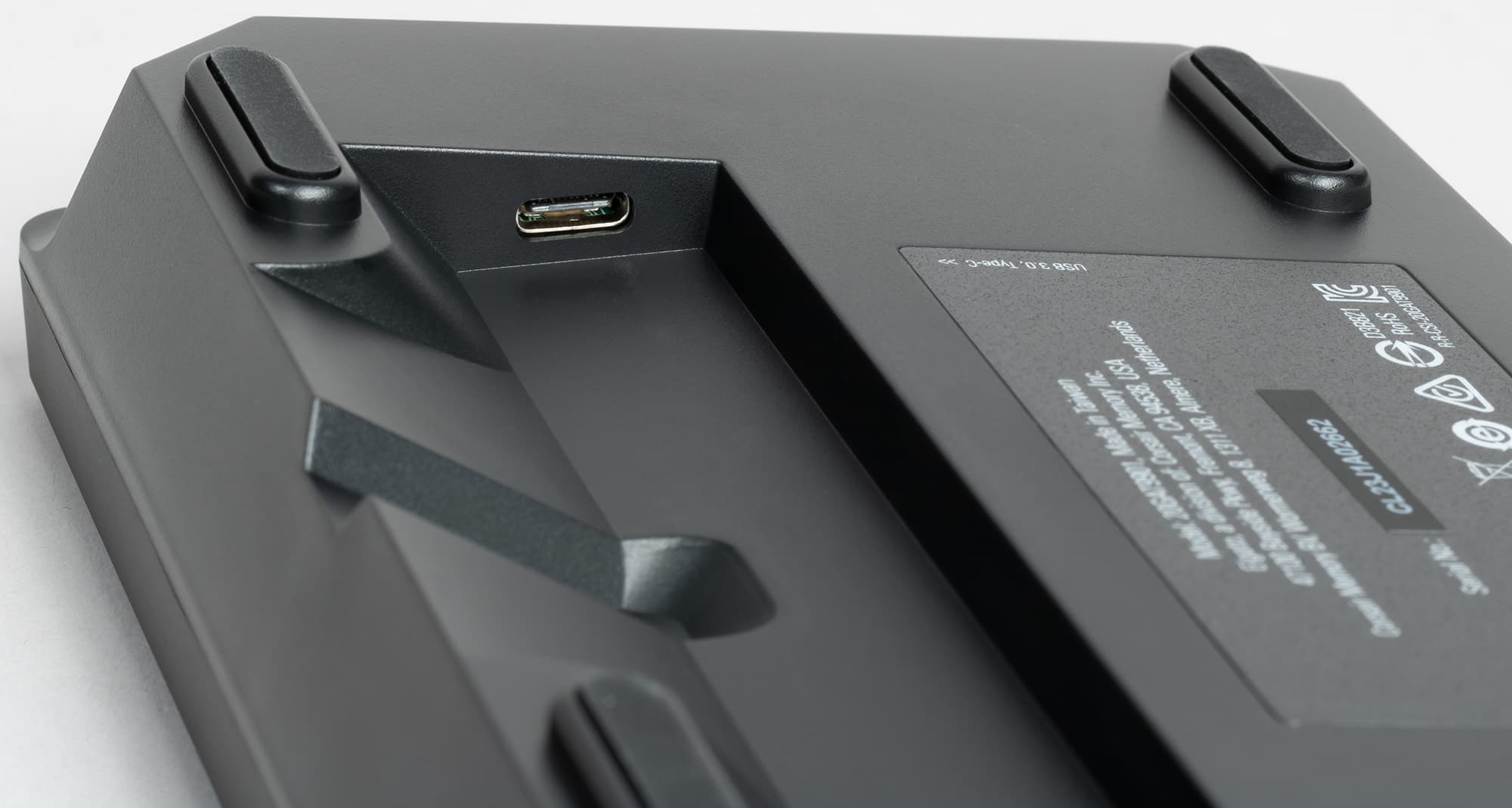 Единственный интерфейс — порт USB-C — тщательно спрятан в боковом простенке внутренней ниши панели. Плохо, что здесь не предусмотрен какой-то фиксатор кабеля. Прилагаемый толстый кабель имеет оплетку, и он довольно жесткий.
