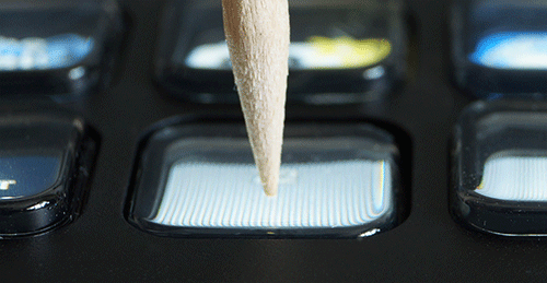 Клавиши изготовлены из прозрачного пластика и имеют выпуклую линзообразную форму, из-за которой изображение под кнопкой чуть искажается в углах и по бокам.