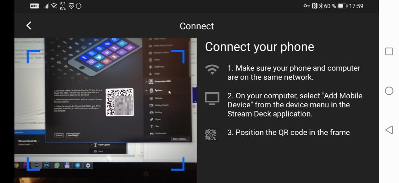 Чудесно? Еще как. Добавление мобильного устройства производится элементарно, обычным считыванием QR-кода, который отображается в ПК-шном приложении Stream Deck. Секунда — и у вас на столе появился второй 15-кнопочный контроллер.