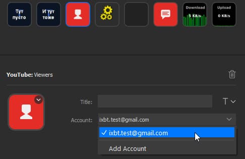 После чего при настройке кнопки, отображающей количество зрителей, достаточно будет выбрать только что введенный аккаунт.