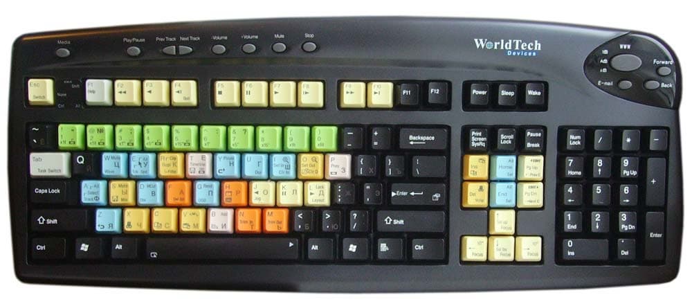 Устройства похожего назначения автор видывал еще в первом десятилетии века. Это были скромные клавиатуры, а отличались они особой расцветкой клавиш, которая облегчала процесс видеомонтажа. Причем под каждую монтажную программу существовала (и существует!) своя модель клавиатуры. А как иначе? Ведь клавиатурные сокращения команд в каждой программе разные.