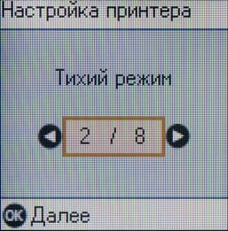 Тихий режим, в котором шумность устройства снижается за счет уменьшения скорости работы, присутствует в разных моделях разных производителей. Но обычно для его включения надо немало попутешествовать по меню панели управления (как вариант — по настройкам драйвера или веб-интерфейса), а здесь он задействуется и отключается с помощью иконки домашней страницы, что гораздо удобнее. Правда, и в меню настроек принтера тоже есть управление этим режимом.