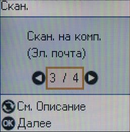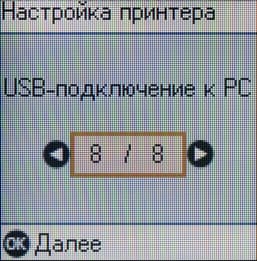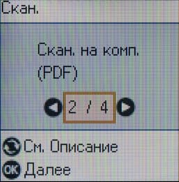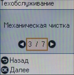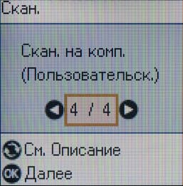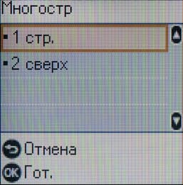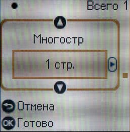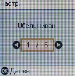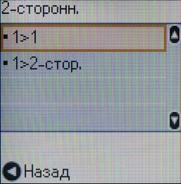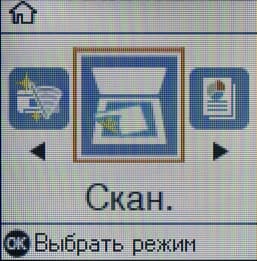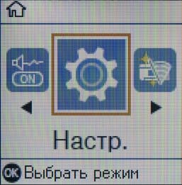 Структура меню и принципы навигации по нему похожи на то, что мы видели в упоминавшемся портативном принтере WF-100W, разница в деталях: иное цветовое оформление да есть отличия в списке режимов и настроек — M2140 все же является монохромным МФУ с единственным USB-интерфейсом, а не цветным принтером с USB и Wi-Fi.