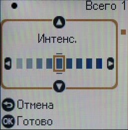 Копии тестовой полосы ожидаемо получаются хуже, чем отпечатки: существенно выше контрастность, что прежде всего сказывается на различимости шкалы нейтральных плотностей. В небольшой степени это можно отрегулировать установкой «Интенс.».