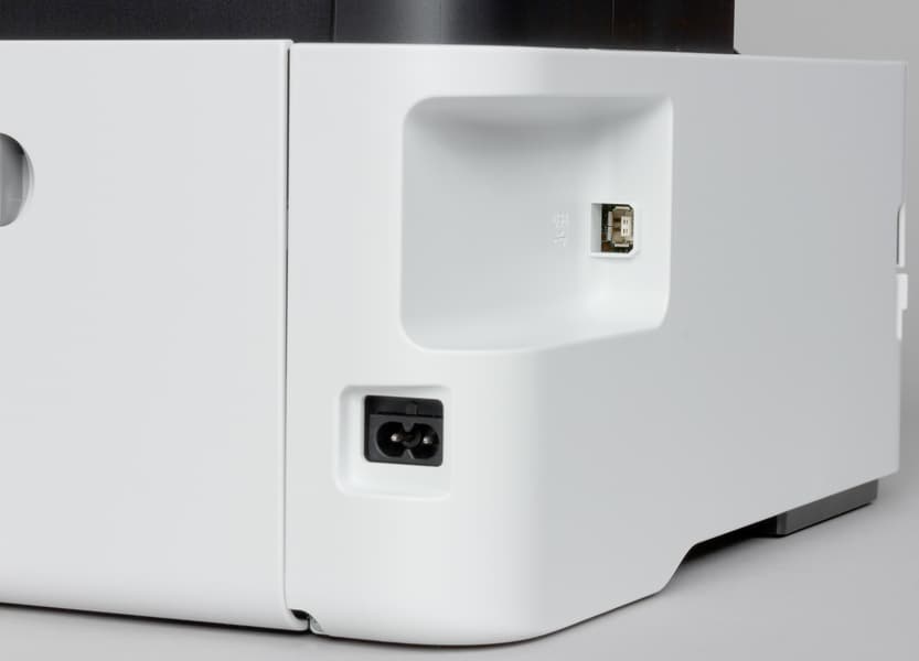 В левой части задней стенки находятся разъем для кабеля питания и порт USB для подключения к компьютеру.