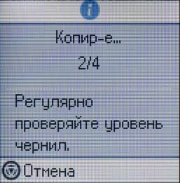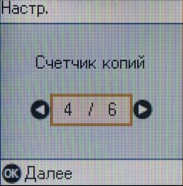 Во время копирования на экране через дробь отображаются значения количества изготовленных и заданных копий.