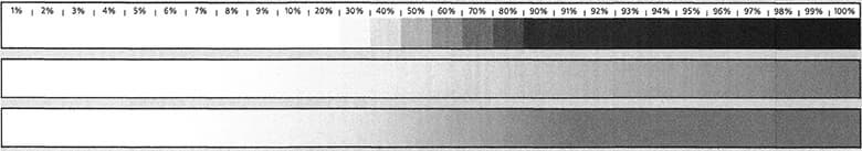 Различимость шкалы нейтральных плотностей на «светлом конце» отличная, от 1%-2%, но на темных участках хуже: заканчивается на 91%-92%.