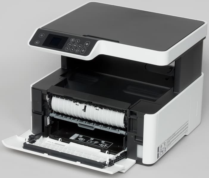Первая заправка производится при выключенном МФУ, а последующие дозаправки можно делать в любое время в соответствии с несложной процедурой, описанной в инструкции.