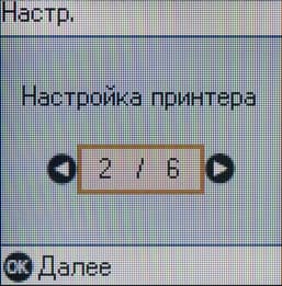 Дальше можно запустить настройку качества печати, выбрав «Отрег.(рек.)» (то есть «Отрегулировать (рекомендуется)») в появившемся экранном сообщении, а можно и отложить это действие до подключения к компьютеру. В любом случае надо будет загрузить бумагу.