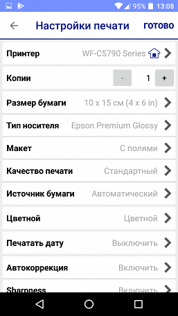 Разница между временем печати при стандартном и высоком качестве существенная, практически двукратная, а вот при смене типа фотобумаги отличия меньше, хотя и не на уровне погрешности измерений.