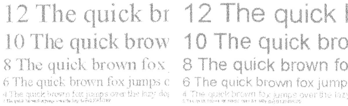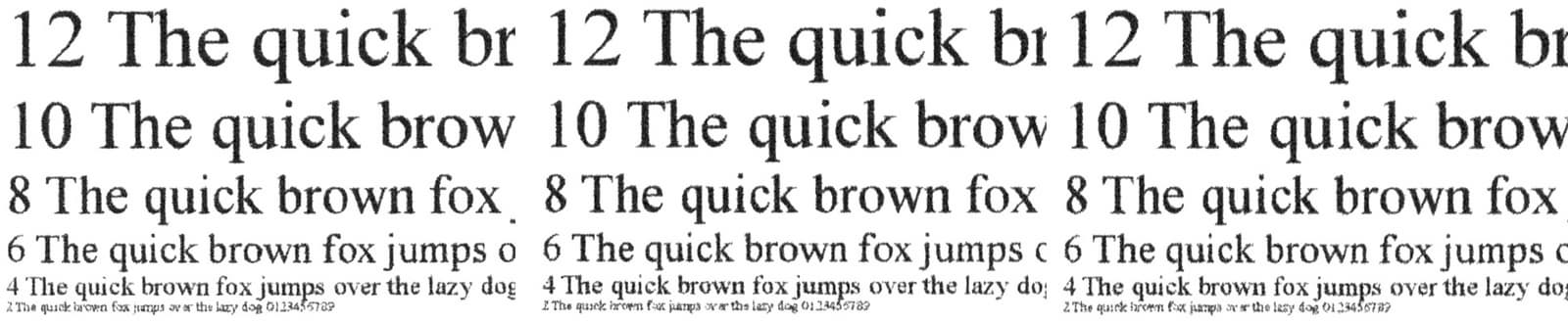 Для оценки копирования мы использовали образец, на котором читаемость начинается со 2-го кегля. Результат получился очень приличным: на копии текст с любым типом шрифтов начинался с 4-го кегля, причем заливка с установками по умолчанию, пожалуй, получалась слишком плотной. Если попробовать подобрать настройки, включая плотность, а также использовать бумагу самого высокого качества для струйной печати, то можно добиться и более-менее приемлемой разборчивости 2-го кегля, хотя бы в большей части текста.