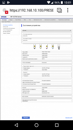 | Поддержка | iPrint, Email Print, Epson Connect, Wi-Fi Direct |