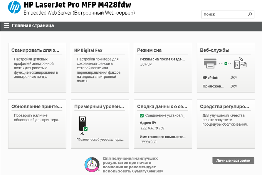 Многофункциональное устройство HP LaserJet Pro M428fdw в наших тестах показало себя с хорошей стороны: его производительность в разных режимах близка к заявленной, качество отпечатков (с учетом категории) на должном уровне.