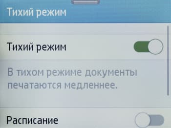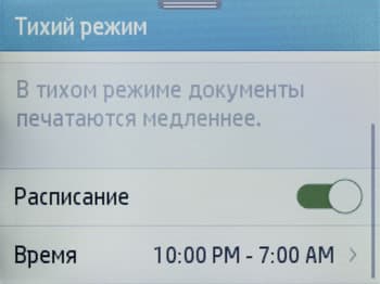 Имеется и возможность перевода МФУ в тихий режим — постоянно или по расписанию (например, с 10 вечера до 7 утра).