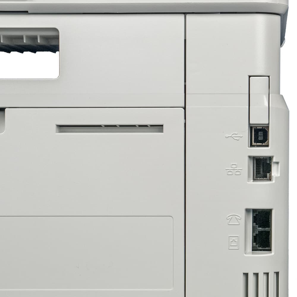 За счет того, что для нормального открывания крышки сканера за аппаратом нужно минимум 5-6 сантиметров, подходящие сзади к этим разъемам провода не будут заметно увеличивать необходимое расстояние до вертикальной стенки. Ну, а для доступа к задней крышке можно и подвинуть аппарат, благо он не столь уж тяжелый.