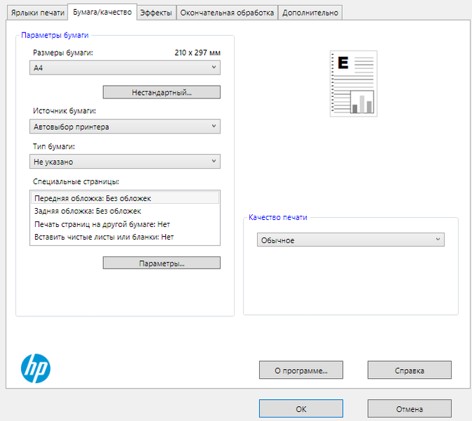 Отпечатки такого типа при установках по умолчанию и с качеством «Обычное» также имеют чересчур высокую плотность, при этом регулировок в явном виде яркости/контрастности драйвер не предоставляет.