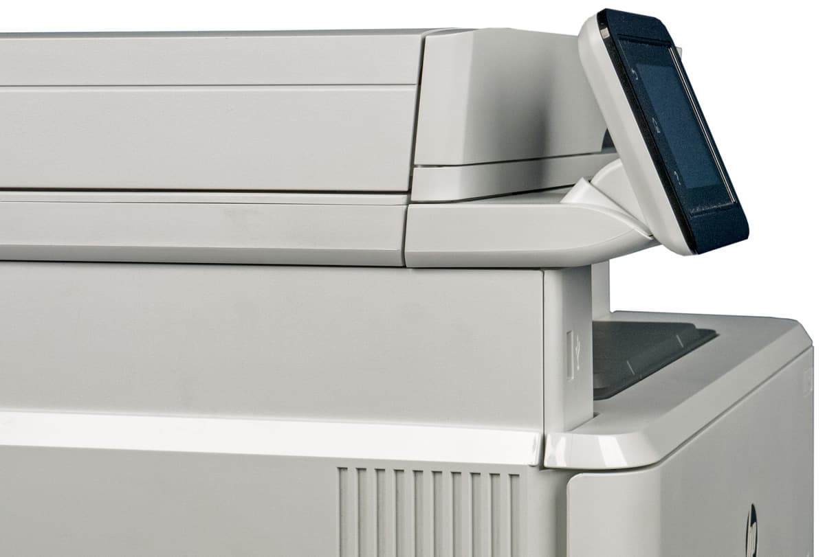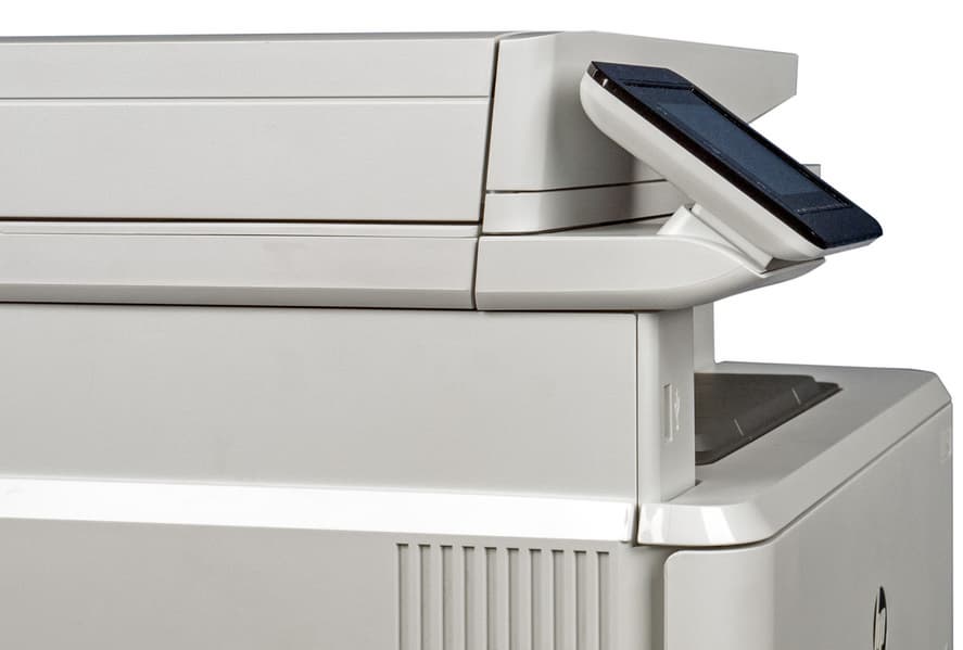 При открытой крышке сканера высота аппарата увеличивается до 58 см, с дополнительным лотком еще больше, что нужно учитывать при установке под нависающими полками или шкафчиками. Петли крышки не позволяют приподнимать ее задний край при работе с толстыми оригиналами.