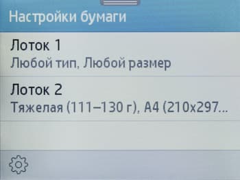 При настройках с панели управления МФУ это более-менее учитывается: для выдвижного лотка нельзя задать выше 111—130 г/м² (хотя, как было только что сказано, заявленный максимум для него 120 г/м²), а для универсального есть и установка 131—175 г/м².