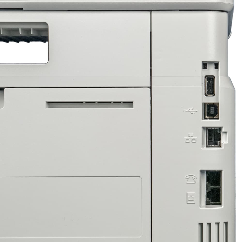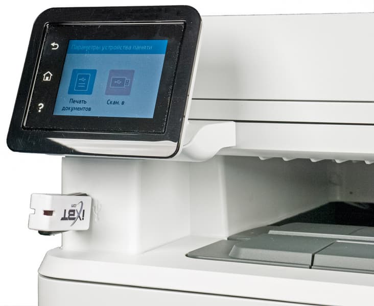 Обратите внимание: сзади над портом USB-B имеется съемная заглушка, под которой находится хост-порт USB-A. Инструкция характеризует его назначение так: «для хранения заданий и печати личных заданий».