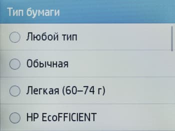 Печать производилась с флешки. Если печатать с компьютера, то несовпадение типов носителей, установленных в драйвере и в настройках МФУ, приводит к появлению запроса с вариантами: заменить бумагу в лотке или печатать на том, что в нем есть (если для такого запроса сделана соответствующая настройка в меню).