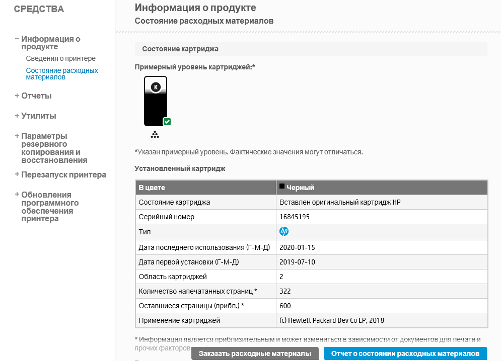 Поэтому список расходных материалов содержит единственный пункт — картридж, но в двух вариантах: