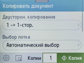 В первом случае откроется экран с основными настройками режима копирования: одно- или двусторонний режим и выбор лотка. Если опуститься чуть ниже с помощью вертикальной прокрутки, откроется неожиданное: поле для предварительного просмотра оригинала. Правда, оно доступно только при использовании планшета, а если оригиналы загружены в автоподатчик, то ничего подобного не будет.
