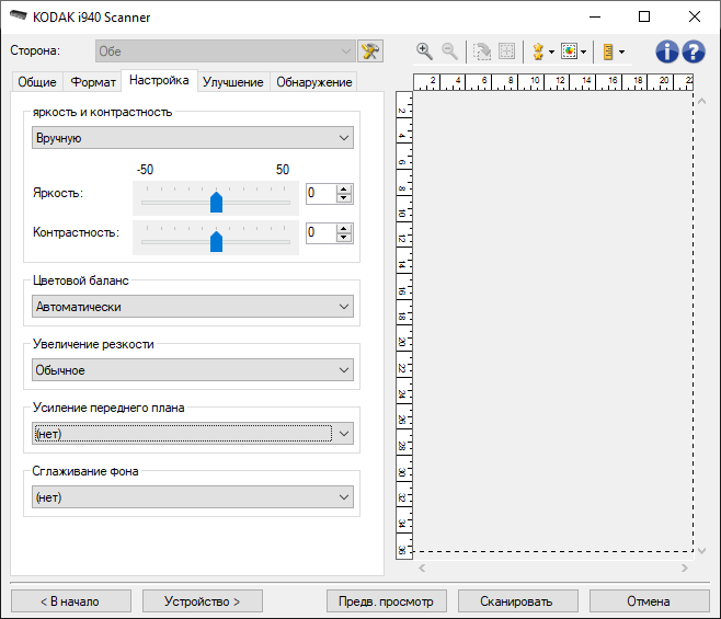 В настройках сканирования следует задать автоматическое определение документа (лучше с выравниванием).