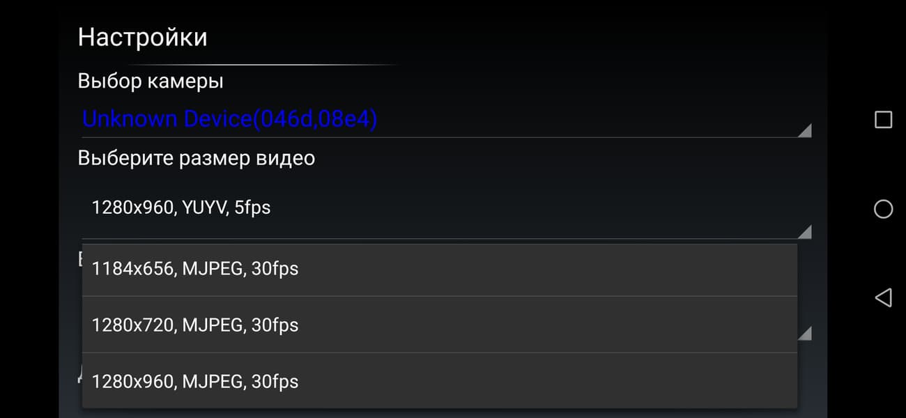 Можно видеть, что настройке поддаются такие параметры, как частота кадров, разрешение, яркость-контрастность-насыщенность, а также выдержка. Все эти возможности предоставляет драйвер, который устанавливается, как мы помним, автоматически. И кстати, оказывается, «умолчальный» (дефолтный) размер кадра нашей камеры — это вовсе не 1280×720, а 1280×960 при частоте 30 кадров в секунду при условии MJPG-сжатия.