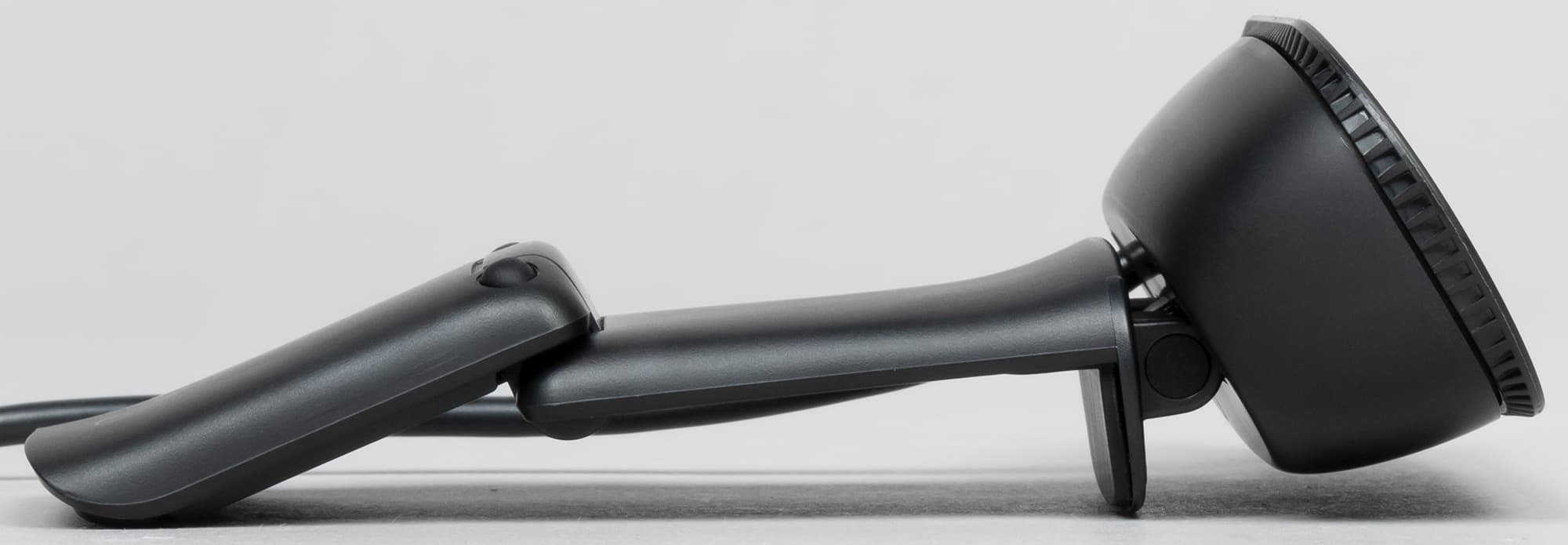 Благодаря такому креплению прибор уверенно удерживается на тонких и толстых мониторах, даже на ноутбучных экранах. Впрочем, камеру можно установить и на горизонтальную поверхность — матовый пластик хорошо удерживает ее на гладких покрытиях.