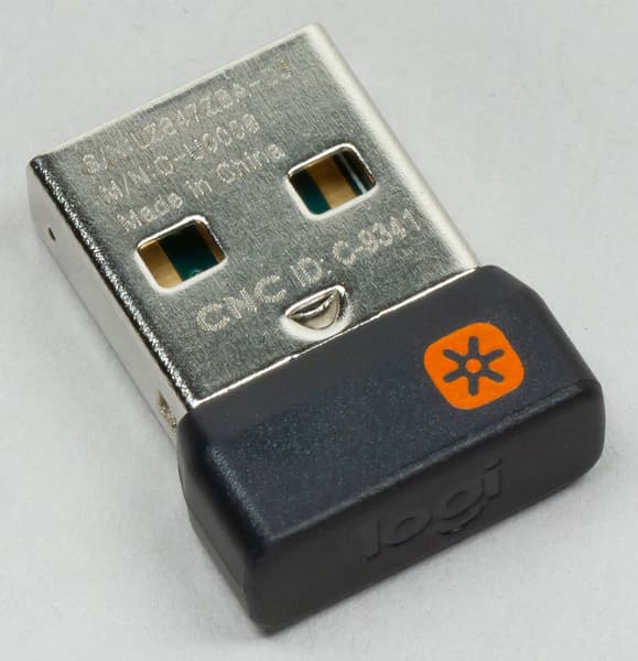Для начала нужно вставить приемник Unifying из комплекта в порт USB компьютера. Выступает наружу он совсем немного, всего на 5-6 мм, хотя бывают и более компактные беспроводные адаптеры.