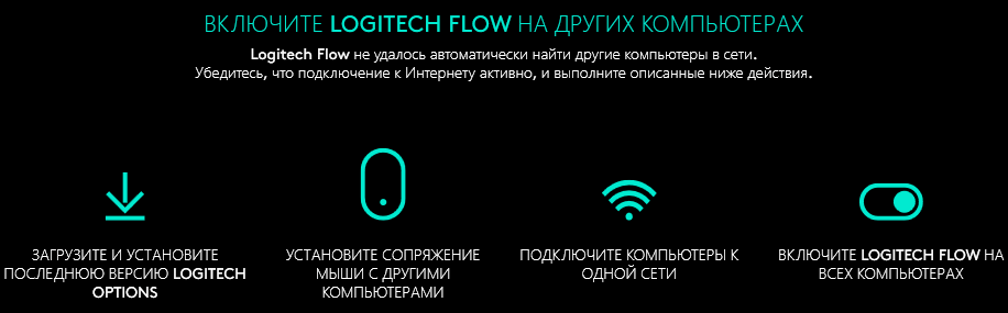Подчеркнем: на каждом из компьютеров должны быть выполнены все перечисленные действия — установлена программа Logitech Options, с ее помощью должна быть включена функция Flow, все они должны быть в одной сети, проводной или беспроводной, и непременно должно быть установлено сопряжение мыши с каждым из них.
