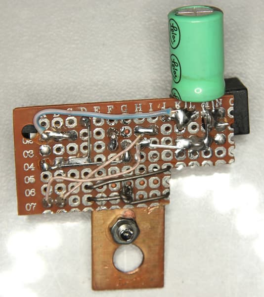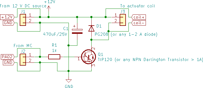 Роботизированный палец под собственным весом опускается вниз до контакта с кнопкой мыши, что фактически соответствует положению расслабленного пальца пользователя. Для нажатия достаточно подать на катушку привода импульс тока нужной полярности, а в отсутствие тока «палец» сам вернется в исходное положение. Это позволило обойтись простейшим приводом с одним транзистором. Его схема: