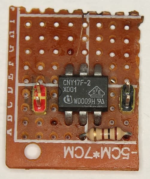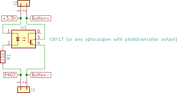 Чтобы избежать возможного взаимного влияния контроллера мыши и модуля управления, контакты замыкались с помощью фототранзистора, то есть с гальванической развязкой. Схема приведена ниже: