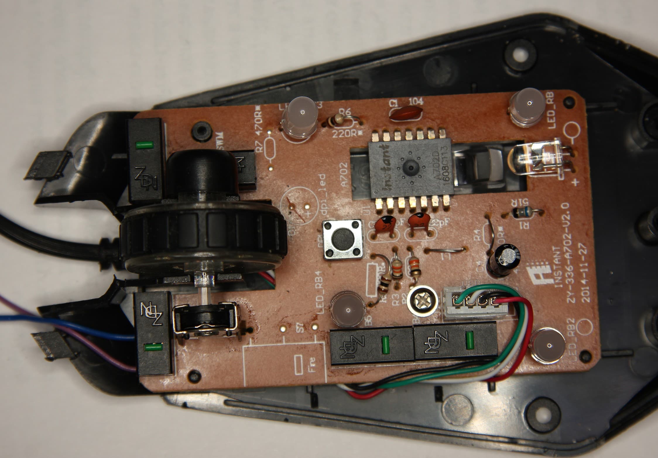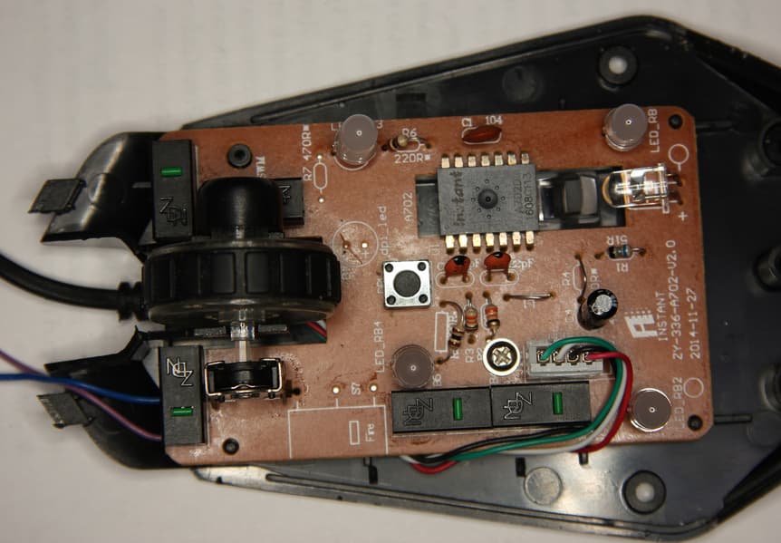 И подпаяли два проводка к контактам микропереключателя левой кнопки: