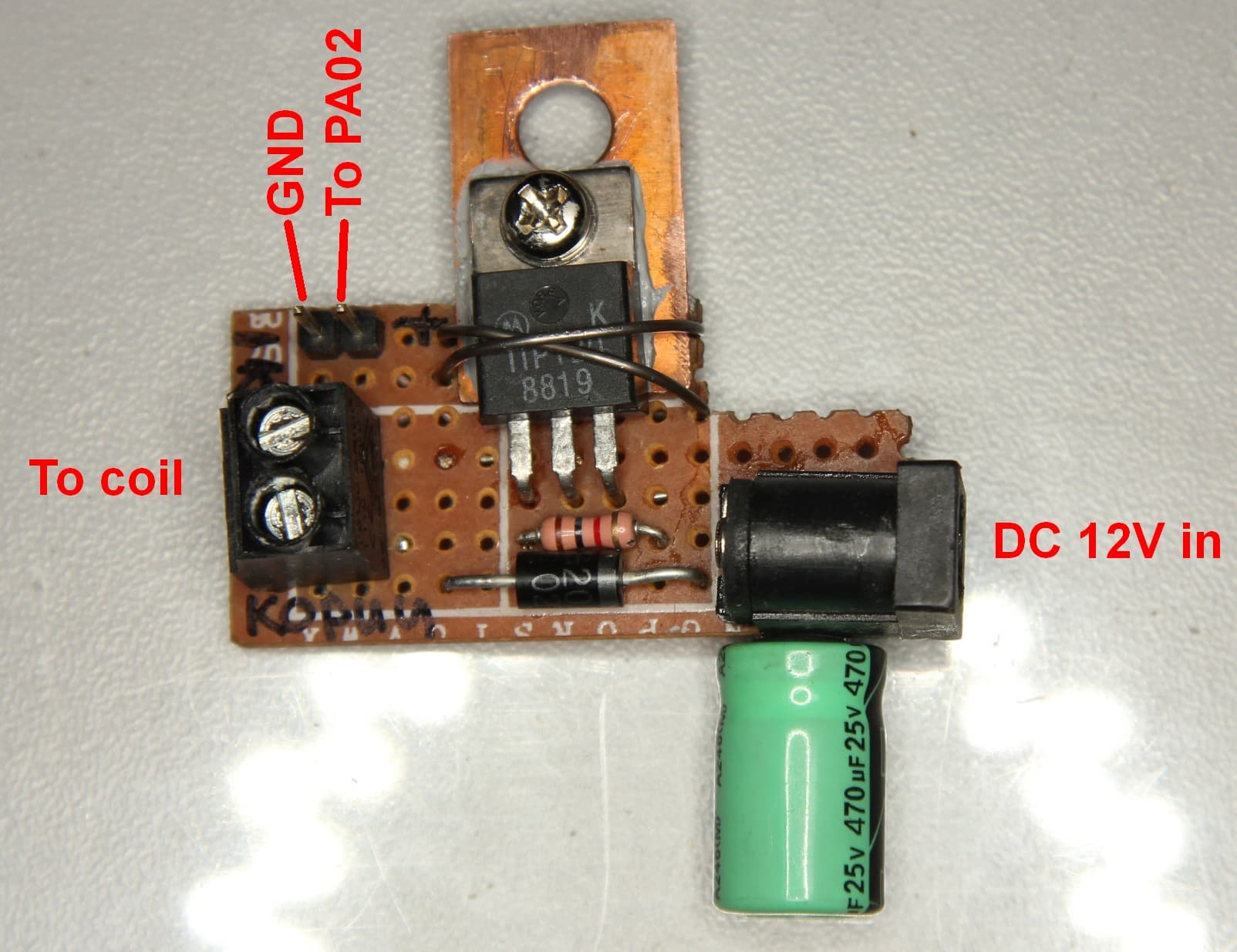 - Модуль Seeeduino Xiao через модуль драйвера подает напряжение на катушку привода и запускает таймер отсчета задержки.