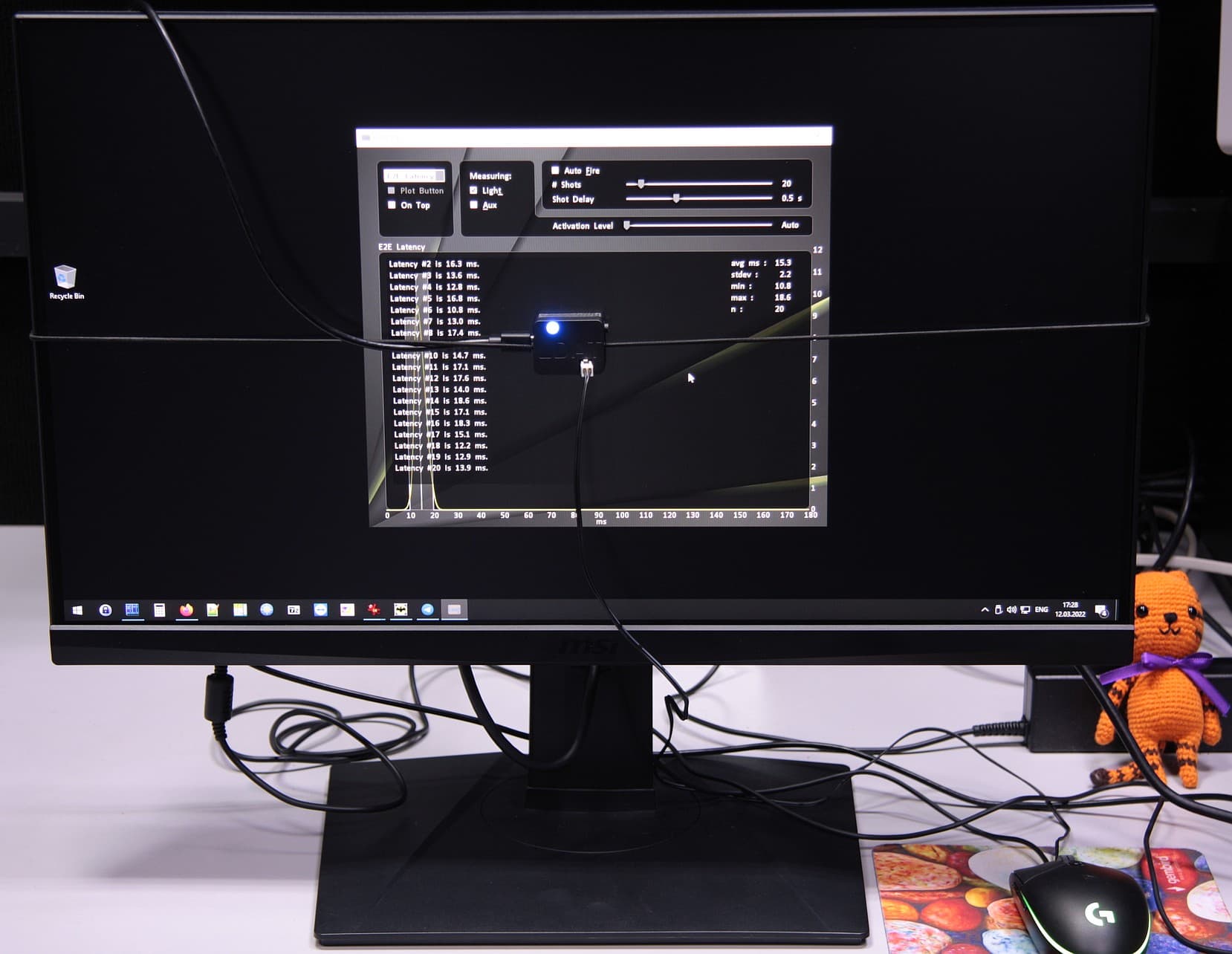 Отметим, что в случае новой версии датчика LDAT, судя по всему, можно определять задержку именно мыши, видимо, не по вспышке на экране, а по приходу системного сообщения. Однако перспективы на то, что этот датчик у нас появится, не очень оптимистичные. Забегая вперед, укажем, что принцип работы такого нового датчика LDAT в точности такой же, что и у первой версии нашего стенда – см. ниже.