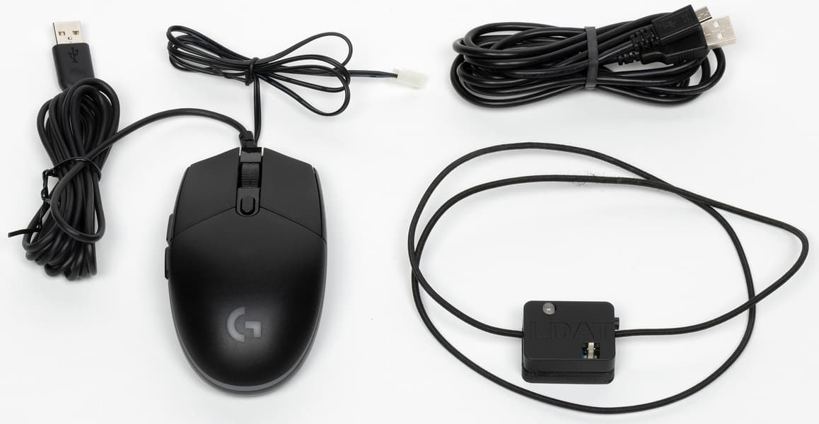 Среди обозревателей игровой периферии, пожалуй, самым распространенным способом измерения задержки нажатия на кнопку мыши является методика, включающая использование комплекса Latency and Display Analysis Tool (LDAT) компании Nvidia. Комплект состоит из слегка доработанной (об этом ниже) мышки Logitech G203 Prodigy, собственно датчика LDAT и кабеля USB 2.0 с вилками типа A и Micro.